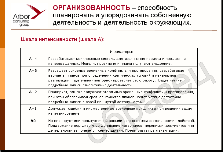 - Метод критических инцидентов – метод позволяет собрать данные о событиях, результаты которых оказались важными и значимыми для достижения целей работы. Акцент делается не на повседневных задачах, а на событиях, которые можно разделить по успехам и неудачам. События в последствии подробно исследуются и позволяют выделить комплексную картину поведения, навыков, качеств личности, необходимых для выполнения работы. Метод позволяет обеспечить богатое содержание работы. Для повышенной различительной способности модели метод критических инцидентов проводится с различающимися по эффективности сотрудниками. После проведения интервью осуществляется качественный анализ поведенческих примеров, классификация поведенческих примеров по компетенциям. На основании поведенческих примеров формируются индикаторы и строятся шкалы измерения компетенций.